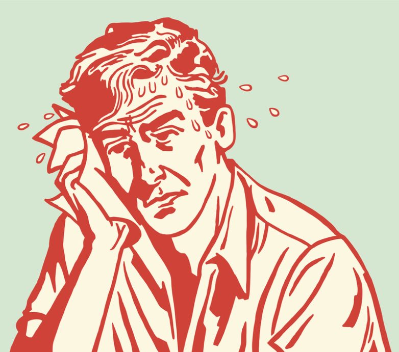 Это самая распространённая причина потливости у женщин после 45. Из-за снижения уровня эстрогена возникают приливы — «пожар» внутри, который зарождается в груди и поднимается к лицу. Доктор наук, гинеколог Хизер Керри из США утверждает, что такой симптом встречается у 85% женщин, переживающих климакс.
