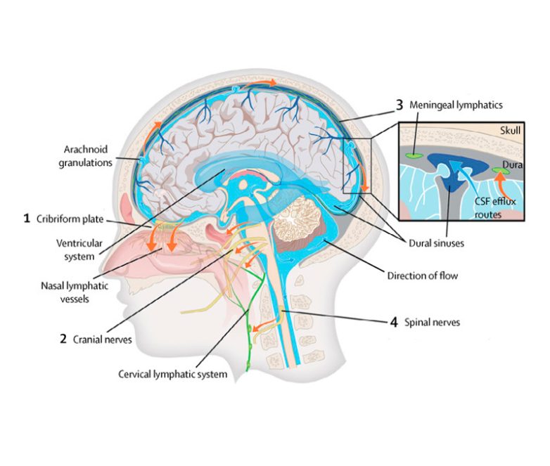 Система с напором проталкивает спинномозговую жидкость сквозь ткани, и убирает отработанные белковые структуры, которые скапливаются в межклеточном пространстве мозгового вещества во время дневной работы. Эти белки представляют собой продукты жизнедеятельности мозговых клеток. Такое самоочищение мозговых оболочек происходит только, когда человек спит.