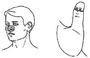 Рис. 3. Наложение эластичной резинки при головной боли на сустав большого пальца
