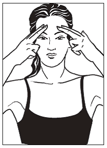 Упражнение 1Прижмите по два пальца (средний и безымянный) к точкам над бровями и задержитесь в этом положении на 1–2 минуты. Концентрация на этих точках позволит вам успокоиться и сосредоточиться.