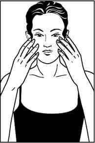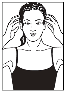 Расположите руки прямо над ушами по обе стороны головы. С помощью всех пальцев, кроме большого помассируйте височные мышцы.