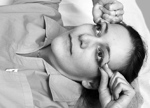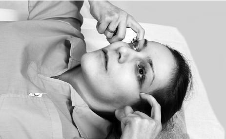 Упражнение проводить лежа на спине. Под голову подложить маленькую подушечку. Указательными пальцами растянуть круговые мышцы глаз кнаружи до легкого сопротивления, прижимая их к костям лица.