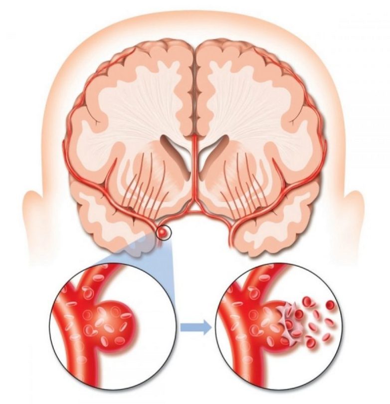 Субарахноидальное кровоизлияние. При этом виде геморрагического инсульта происходит разрыв аневризм. Кровь попадает в область, расположенную вокруг мозга, которая заполнена специальной защитной жидкостью. Причиной может также быть черепно-мозговая травма.