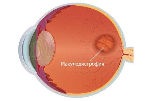 Развивается макулодистрофия из-за нарушения питания клеток желтого пятна, которое, в свою очередь, нарушается из-за нарушения кровообращения в сосудах сетчатки глаза, их атеросклероза. Именно из-за этого разрушаются колбочки – светочувствительные клетки.