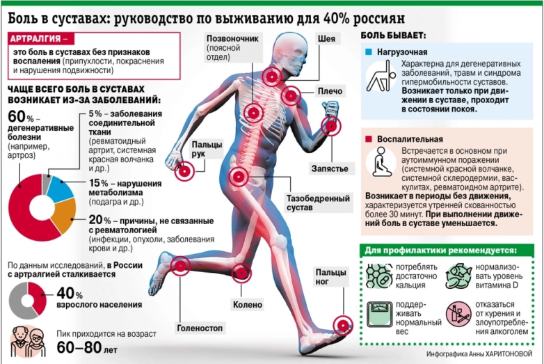 «Для поддержания суставов важно поддерживать нормальный вес, следить за питанием и давать организму постоянную нагрузку», — отмечает Савин. Если следовать этим правилам и давать постоянную умеренную нагрузку на суставы, их здоровье будет стабильным.Упражнения гарантируют нагрузку и подвижность